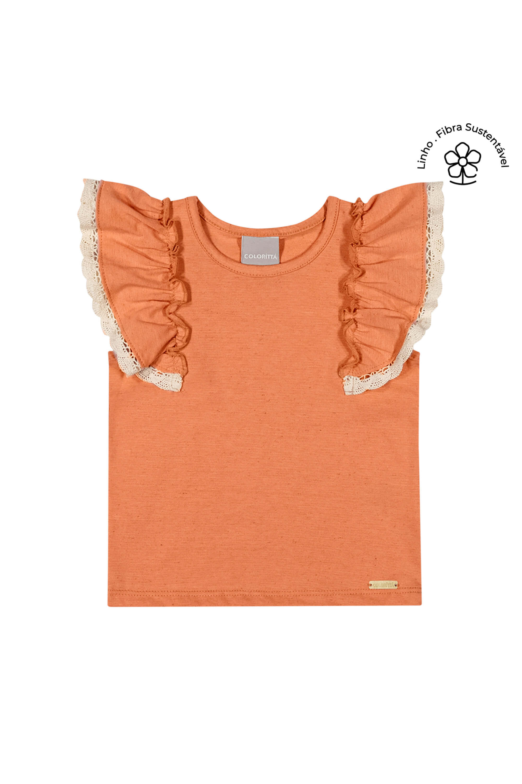 Blusa Infantil Menina Malha Linho Manga Curta Babado Laranja REF: 7908952283256