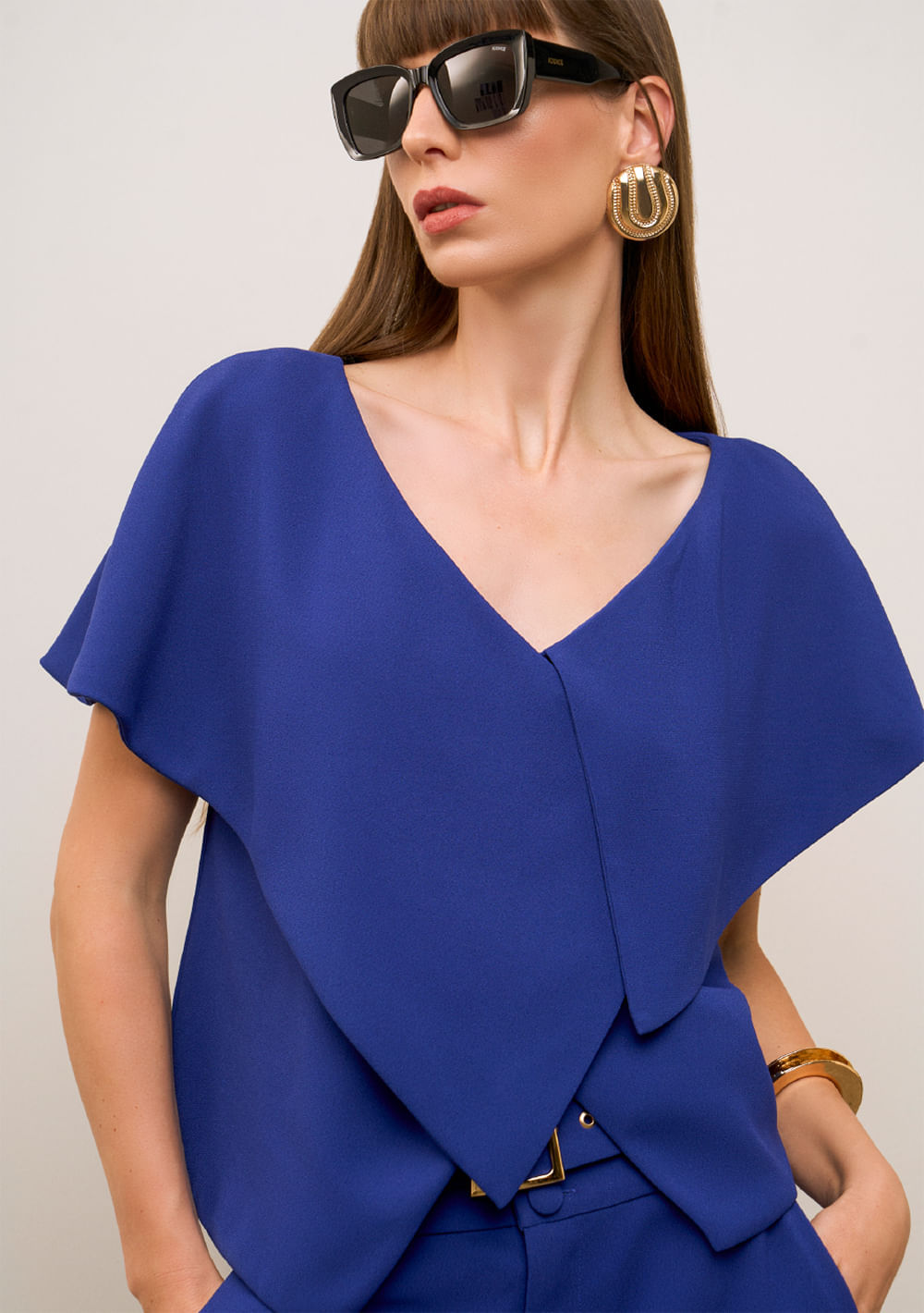 Blusa Iódice Ajustada Decote V Manga Curta Padrão Azul REF: 7908972350570
