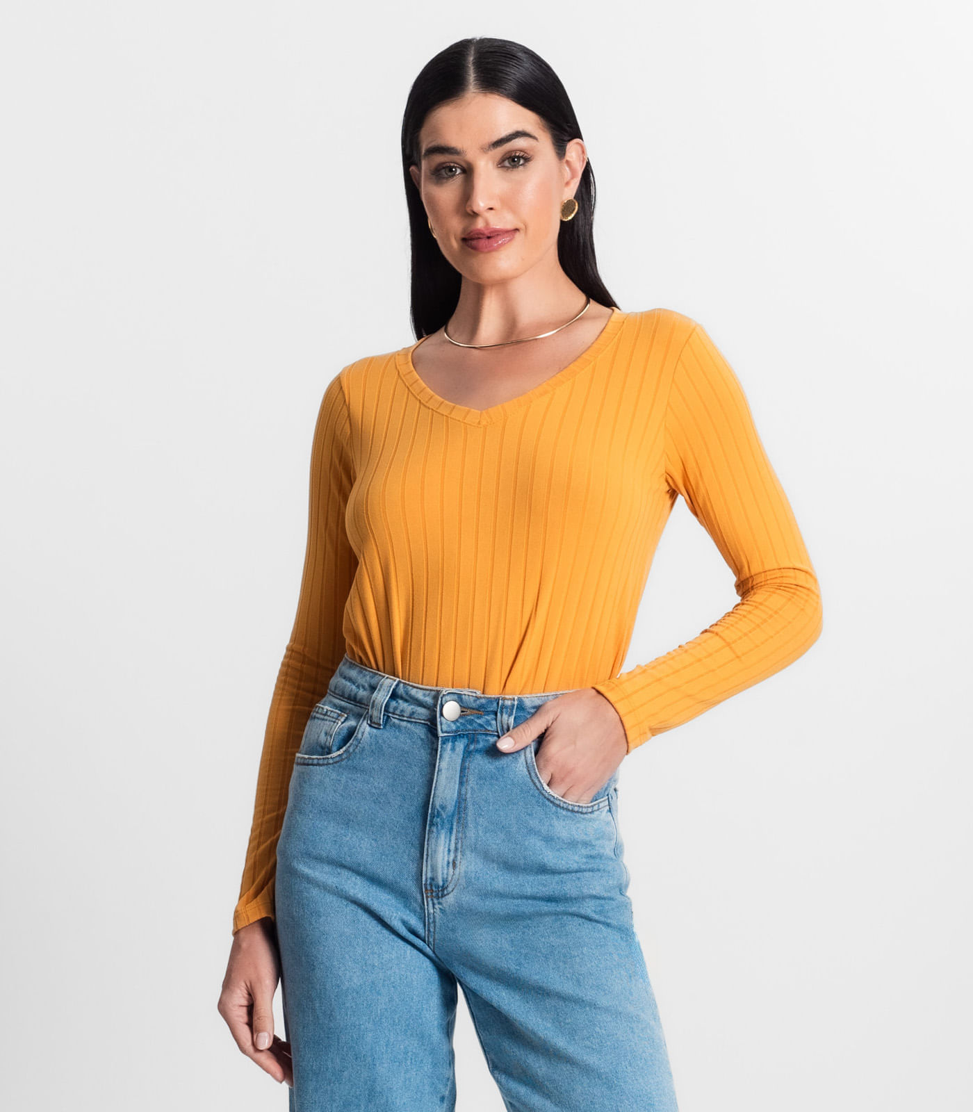 A Blusa Ajustada Malha Canelada Manga Longa Amarela é uma peça que une elegância e conforto com maestria. Confeccionada em malha Delicate com 92% poliéster e 8% elastano, oferece toque suave e excelente elasticidade, garantindo liberdade de movimento e ajuste perfeito ao corpo. Seu design moderno, com textura canelada e barra arredondada, proporciona um caimento fluido e acabamento delicado, valorizando a silhueta feminina. O decote em V clássico adiciona versatilidade, enquanto a abertura lateral facilita o uso no dia a dia. Ideal para ocasiões casuais, trabalho ou eventos que pedem um visual sofisticado e confortável.
