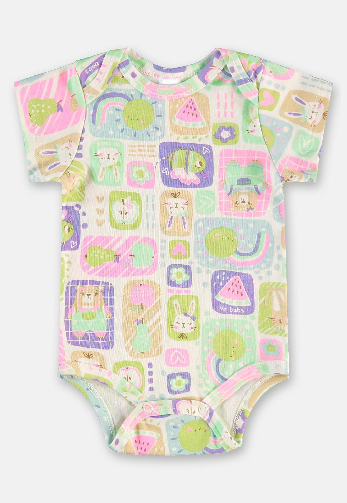 O body bebê menina Up Baby Justo Suedine Manga Curta Multicolorido é sinônimo de conforto e praticidade para os primeiros meses de vida. Confeccionado em suedine 100% algodão, oferece uma textura macia e leve, ideal para a pele delicada do bebê, além de ser antialérgico, garantindo segurança e bem-estar. Sua modelagem justa e o acabamento em bainha e debrum proporcionam um ajuste firme e confortável, sem restringir os movimentos. O design com estampa divertida e colorida traz charme e alegria ao visual, perfeito para o uso diário em ocasiões casuais e ambientes quentes. O fechamento por botões de pressão entre as pernas facilita a troca de fraldas, tornando a rotina dos pais mais prática e rápida.