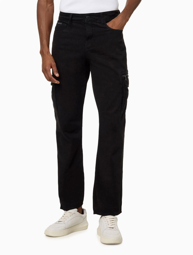 A Calça Masculina New Skinny Cargo Sarja Preto Calvin Klein Jeans é sinônimo de qualidade e estilo. Confeccionada em sarja 100% algodão, oferece conforto e durabilidade excepcionais, com uma textura suave e resistente ao uso diário. Sua modelagem New Skinny, com cintura média e perna levemente justa, proporciona um caimento moderno e elegante, ideal para quem busca uma peça versátil e alinhada às tendências. Os bolsos cargo laterais, além dos tradicionais five pockets, agregam funcionalidade e um toque de estilo casual, perfeito para o dia a dia e ocasiões informais. O gancho levemente deslocado e o fechamento frontal por zíper e botão garantem praticidade e ajuste confortável, enquanto os detalhes de costura reforçam a resistência da peça.