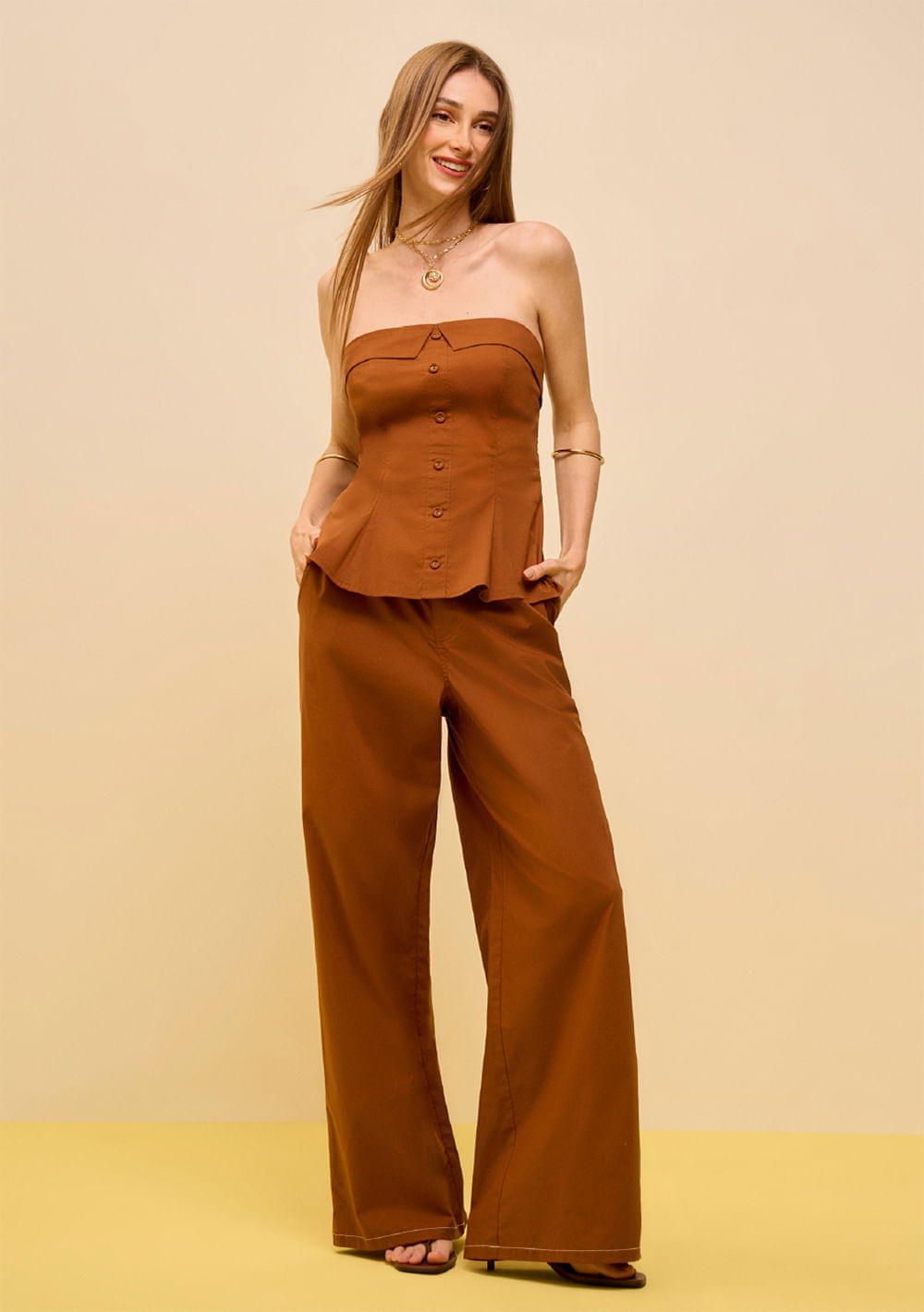 A Calça Zinco Reta Alta Algodão Elastano Caramelo une conforto e estilo com sua modelagem reta e cintura alta, que valorizam a silhueta de forma elegante e moderna. Confeccionada em algodão com elastano, oferece toque macio e elasticidade na medida certa, garantindo liberdade de movimento e ajuste perfeito ao corpo. Seu design minimalista, sem bolsos e com barra tradicional, traz sofisticação e versatilidade para o dia a dia profissional, podendo ser facilmente combinada com camisas ou blusas para um visual clássico ou contemporâneo. A cor caramelo adiciona um toque terroso e neutro, ideal para composições que transitam do ambiente de trabalho ao lazer com facilidade.
