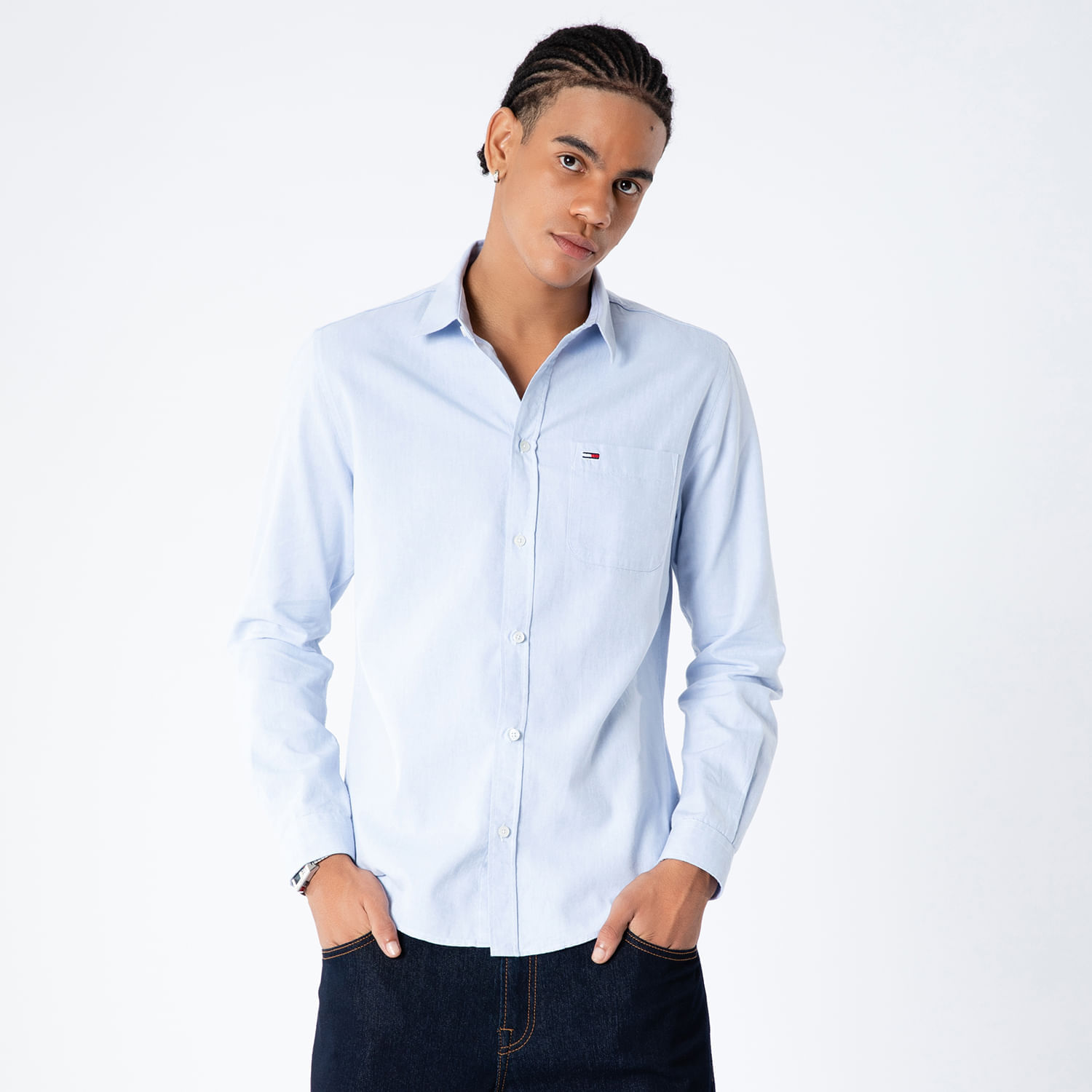 A Camisa Clássica de Oxford Tommy Jeans é a escolha perfeita para quem valoriza conforto e estilo em uma peça versátil. Confeccionada em 100% algodão, oferece respirabilidade e toque suave, garantindo liberdade de movimento durante todo o dia. Seu corte regular proporciona um caimento equilibrado, ideal para diferentes tipos de corpo, enquanto o design com gola tradicional e abotoamento na gola e punhos confere um visual clássico e estruturado. O bolso com a bandeira Tommy Jeans bordada adiciona um detalhe discreto e sofisticado, tornando a camisa adequada para ocasiões casuais e para o dia a dia, seja no trabalho ou em momentos de lazer. A cor azul claro e a estampa lisa facilitam a combinação com outras peças, elevando o seu guarda-roupa com elegância e funcionalidade.