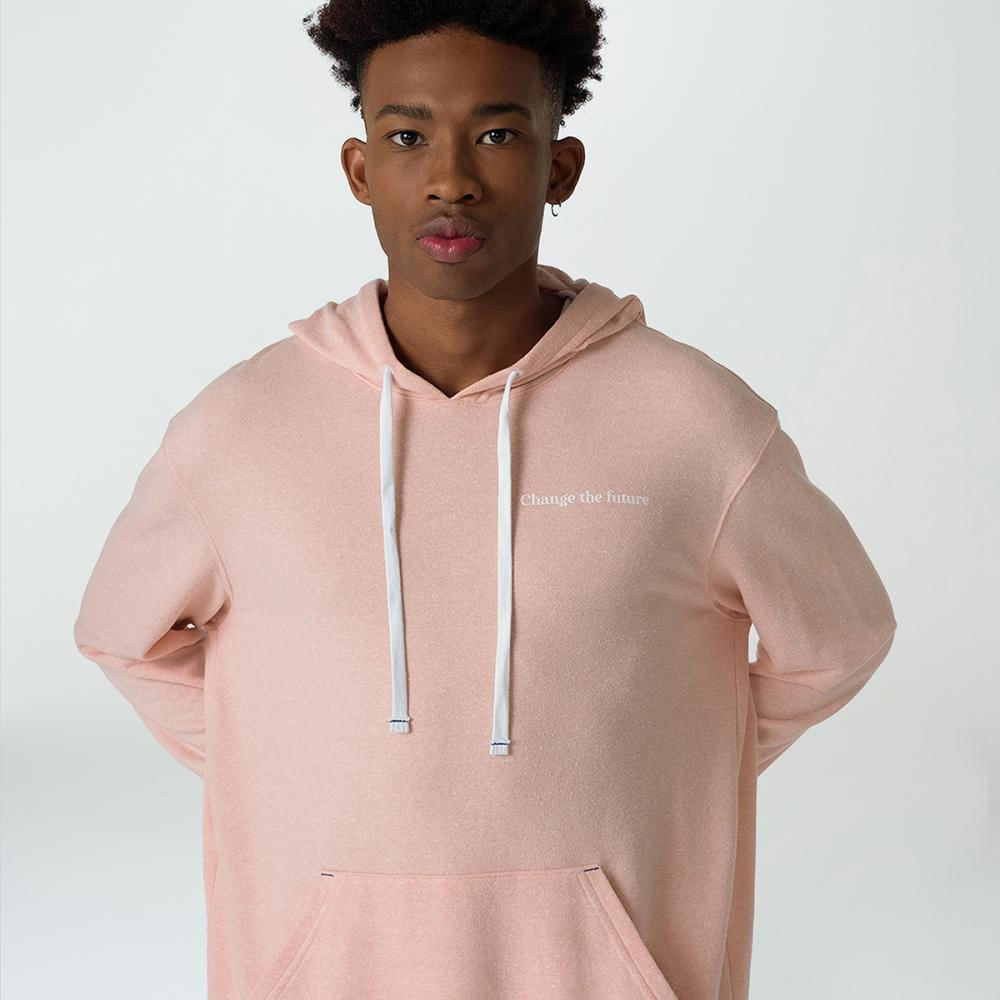 Composição: Mistura de fios de algodão e poliéster sustentáveis, confeccionado em moletom sem felpa.