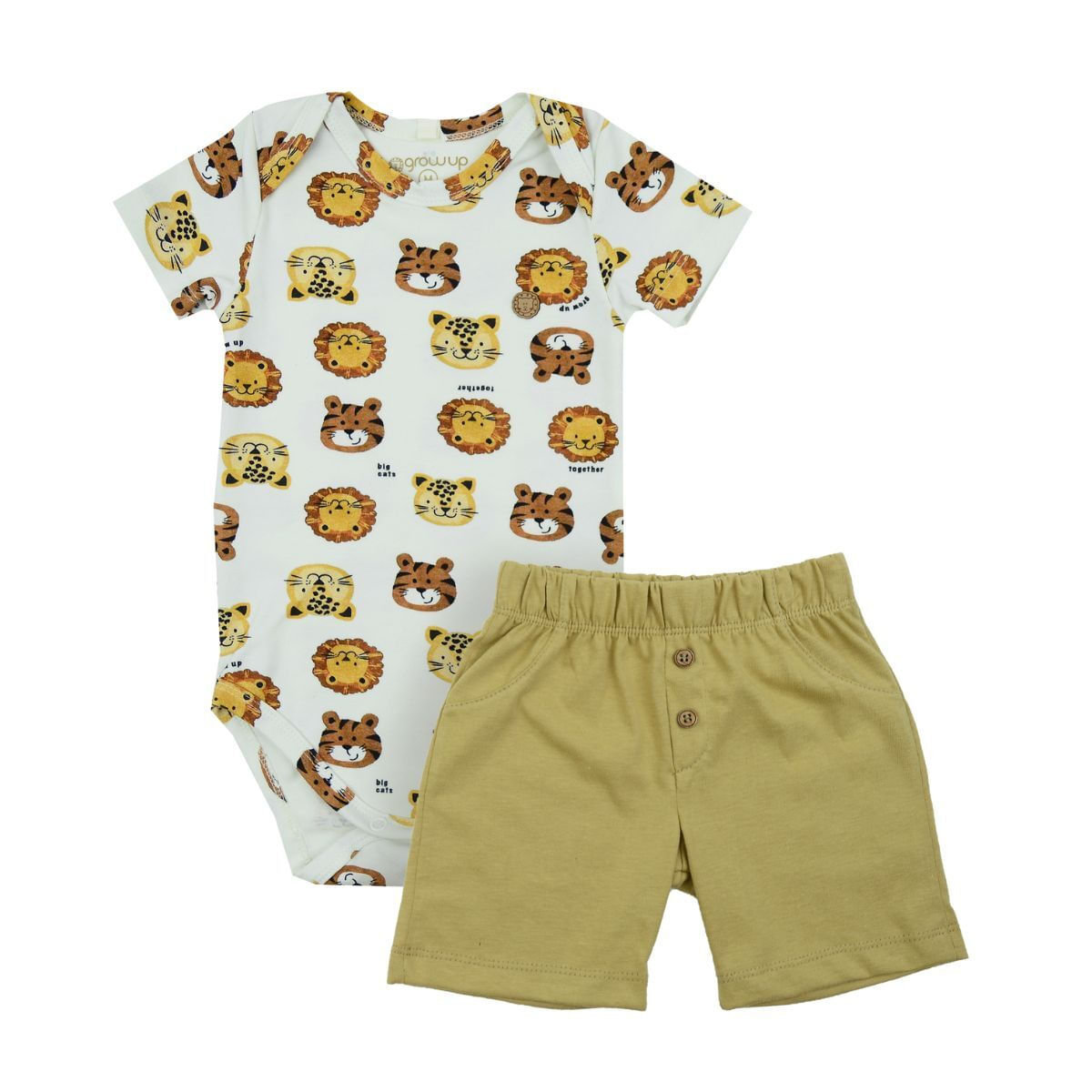 O Conjunto Infantil Safari Curto Estampado Bege Grow Up é sinônimo de conforto e praticidade para os primeiros meses do seu bebê. Com body confeccionado em algodão com elastano, oferece suavidade e elasticidade que garantem liberdade de movimento e ajuste perfeito ao corpo delicado do bebê. O shorts 100% algodão proporciona leveza e respirabilidade, ideal para dias quentes e atividades ao ar livre. Seu design lúdico com estampa de personagens do safari traz um toque divertido e encantador, enquanto a cor bege do shorts cria um contraste harmonioso e elegante. O fechamento com botões de pressão facilita o vestir e a troca, tornando o conjunto funcional para o dia a dia. Além disso, o tecido antialérgico e lavável na máquina assegura praticidade e cuidado com a pele sensível do bebê, mantendo a durabilidade e a aparência do conjunto mesmo após várias lavagens.