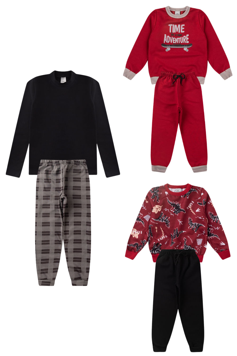 O Kit 3 Conjuntos Infantil Menino Inverno Vida Costeira oferece qualidade e conforto para os pequenos aproveitarem os dias mais frios com estilo. Confeccionado em algodão e poliéster, o tecido é macio, resistente e ideal para a estação de outono e inverno, garantindo aquecimento sem abrir mão da leveza. A modelagem proporciona liberdade de movimento, perfeita para o dia a dia e atividades ao ar livre, enquanto as estampas geométricas em tons bordô conferem um visual moderno e divertido. A combinação de cores e design casual torna o kit versátil para diversas ocasiões informais, unindo funcionalidade e estética em peças duráveis e práticas.