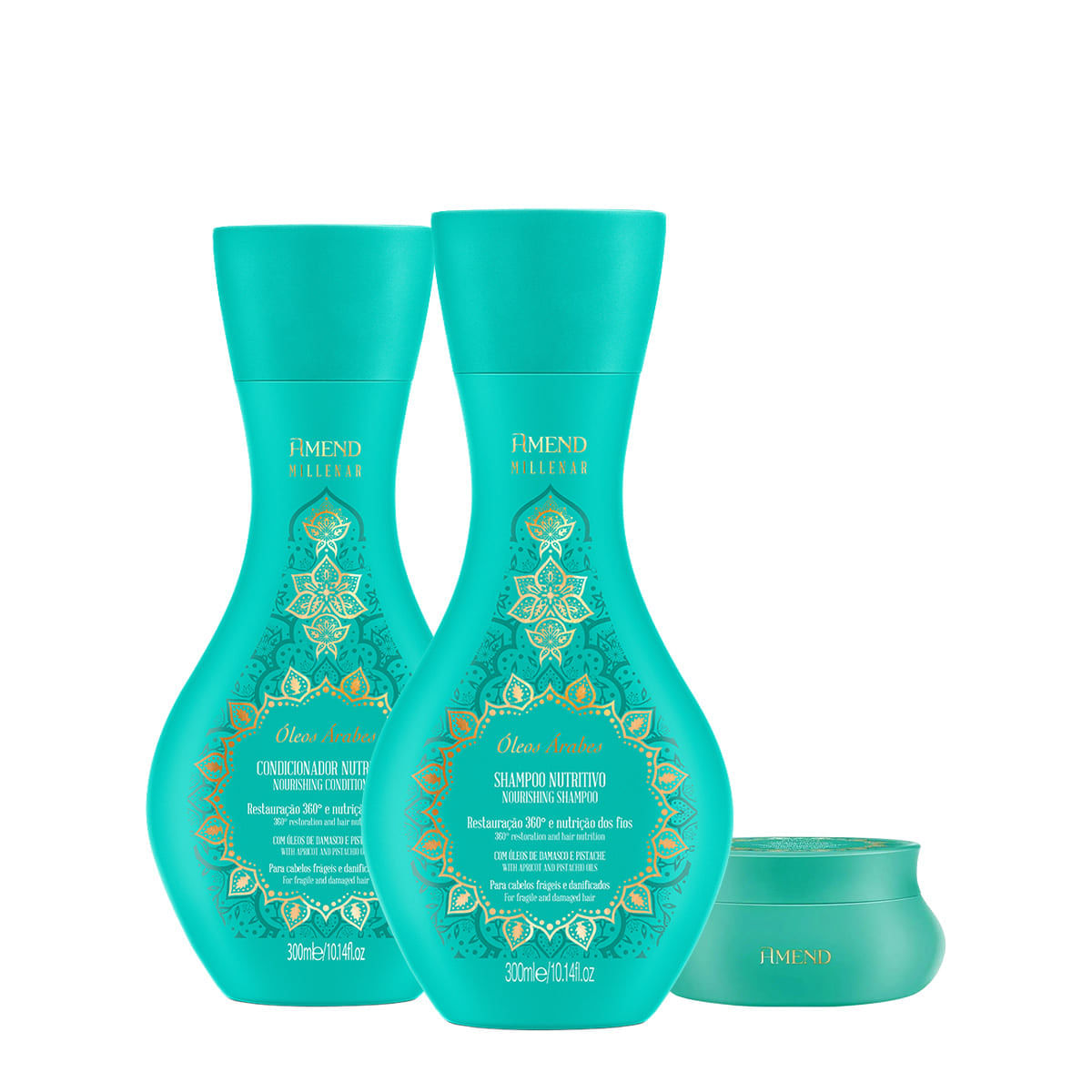 O Kit Millenar Óleos Árabes Força e Hidratação da Amend é a solução completa para cabelos lisos que buscam vitalidade, força e brilho intenso. Com uma combinação exclusiva de óleos de damasco e pistache, este kit oferece um tratamento nutritivo e antioxidante que repara danos e reduz a quebra desde a primeira aplicação. O acabamento dos produtos é sofisticado, com embalagens elegantes e práticas, que facilitam o uso diário. A máscara capilar, com textura cremosa e perolada, proporciona uma hidratação profunda e duradoura, enquanto o shampoo e condicionador limpam suavemente, desembaraçam e protegem os fios contra agressões externas, combatendo o frizz e deixando o cabelo sedoso e forte.
