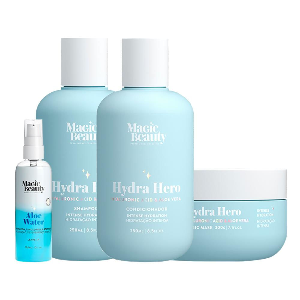 O Kit Tratamento Capilar Hydra Hero une tecnologia e ingredientes naturais para oferecer hidratação intensa e duradoura, do couro cabeludo às pontas. Com ácido hialurônico, aloe vera e aminoácidos, sua fórmula reequilibra a umidade dos fios, blindando-os contra a desidratação e reparando a fibra capilar. O acabamento é sedoso e brilhante, proporcionando maciez e redução do frizz, enquanto a proteção térmica de até 230°C e contra raios UV garante segurança no uso de ferramentas de calor e exposição solar. Livre de petrolatos, parabenos, óleo mineral e etanolaminas, o kit é dermatologicamente testado e cruelty free, ideal para quem valoriza um cuidado consciente e eficaz.