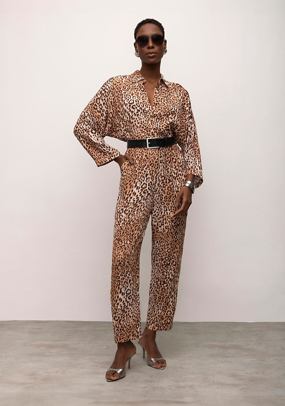 O Macacão Iódice Reto Estampa Animal Manga Longa Caramelo é uma peça que une elegância e conforto com maestria. Confeccionado em viscose leve e fluida, proporciona um caimento perfeito que valoriza a silhueta feminina com sofisticação. A gola alta e o fechamento por botões conferem um toque clássico, enquanto a estampa animal print em tons caramelo adiciona personalidade e modernidade ao visual. Ideal para ocasiões casuais e eventos sociais, este macacão oferece versatilidade para composições do dia a dia ou momentos especiais, garantindo estilo e segurança em cada uso.