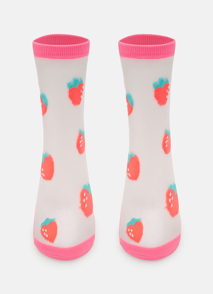 A meia soquete transparente une conforto e estilo: o acabamento em poliamida com elastano oferece ajuste suave ao pé, elasticidade que mantém a forma e resistência ao uso cotidiano. Sem forro e sem abertura frontal, é discreta e funcional para combinar com calçados fechados, ideal para looks casuais e uso diário na primavera e verão. A estampa Vaca Romântica em tom coral adiciona um toque lúdico e moderno, tornando a peça versátil para crianças que querem conforto sem perder a identidade visual.