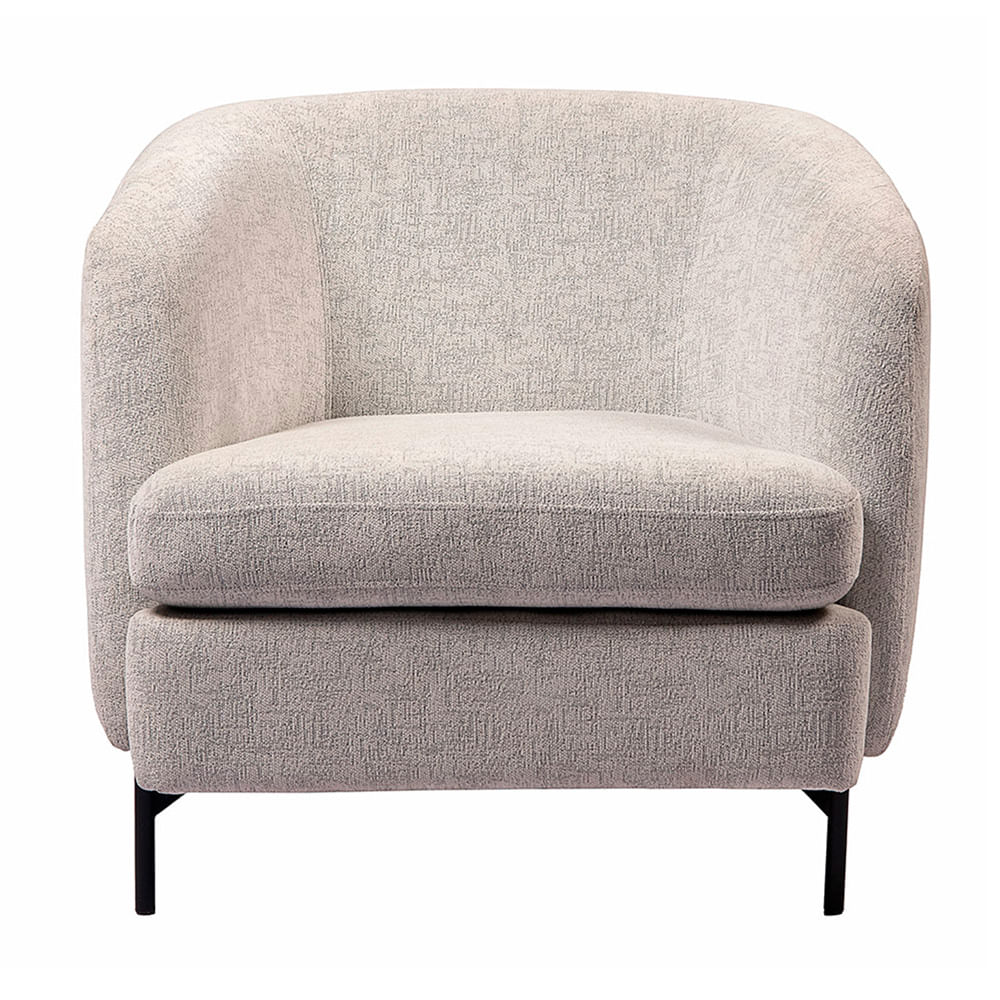 O revestimento em bouclê rústico confere à poltrona uma textura rica e sofisticada, que, além de ser agradável ao toque, é visualmente impactante. A tonalidade e o acabamento do tecido trazem um charme especial, facilmente adaptável a diversos estilos de decoração, desde os mais clássicos aos mais modernos.