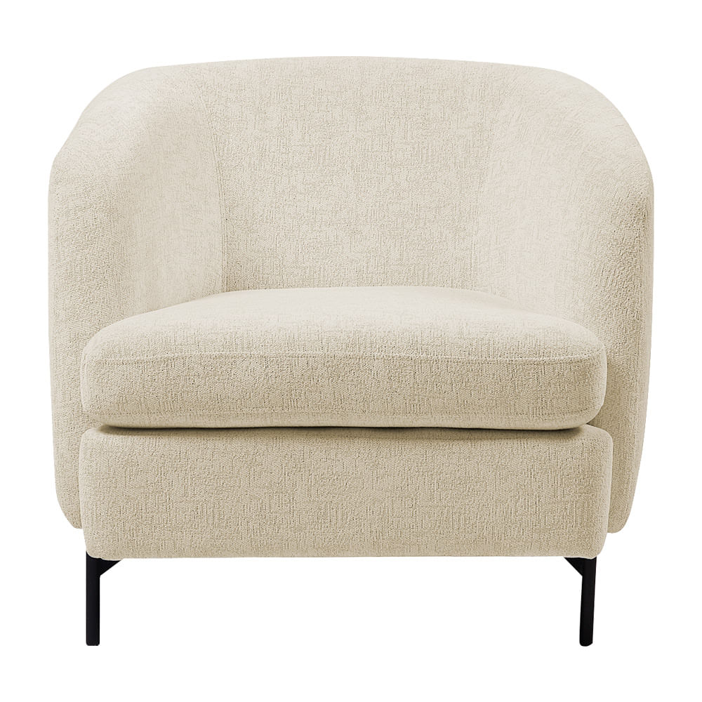 O revestimento em bouclê rústico confere à poltrona uma textura rica e sofisticada, que, além de ser agradável ao toque, é visualmente impactante. A tonalidade e o acabamento do tecido trazem um charme especial, facilmente adaptável a diversos estilos de decoração, desde os mais clássicos aos mais modernos.