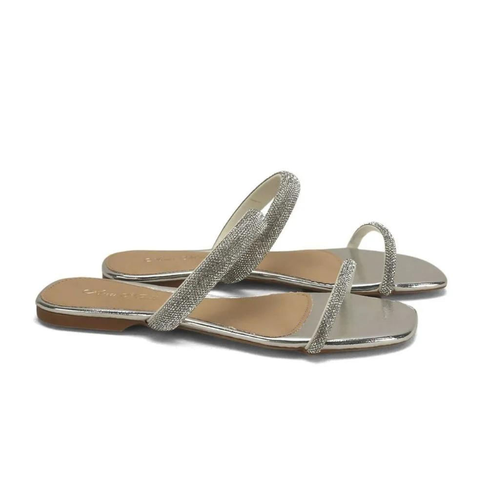 Detalhes Decorativos: Duas tiras adornadas com strass reflexo prata que proporcionam brilho e sofisticação.