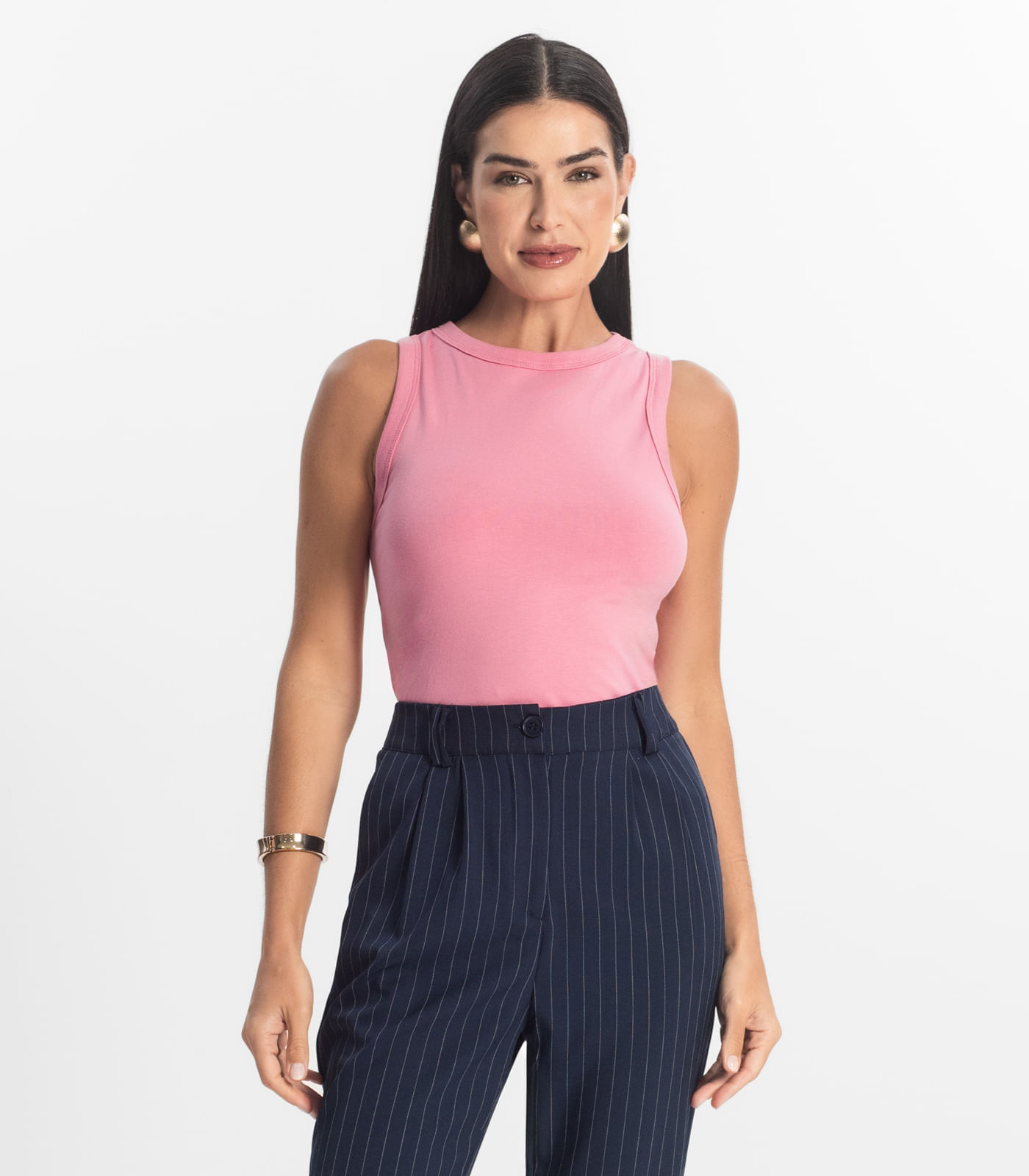 Detalhes Adicionais: Acabamento em friso no decote e nas cavas, costuras discretas e bem acabadas