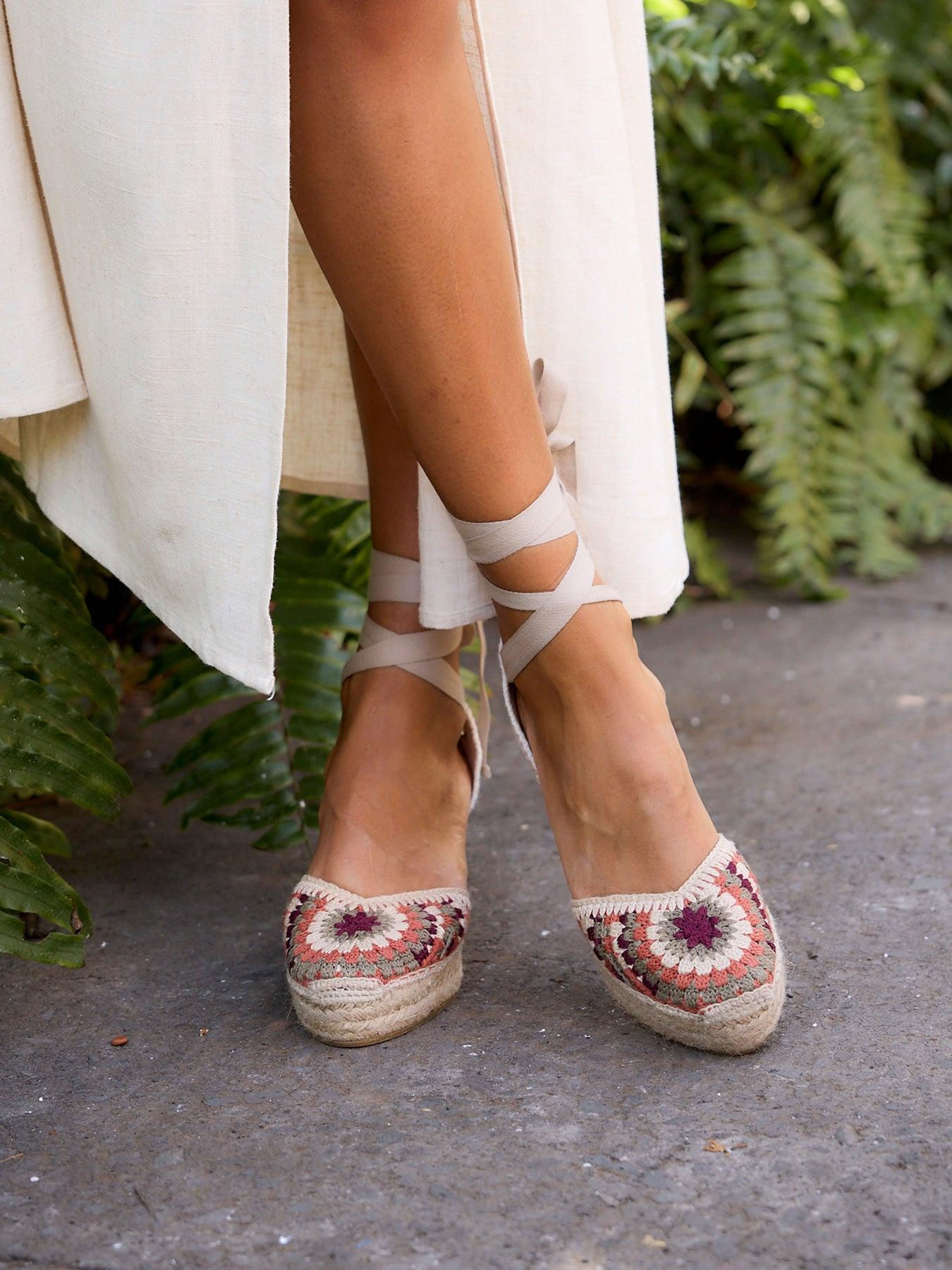 Sandália Anabela Média Plataforma Romero Roseta Bordô REF: 8435670000647