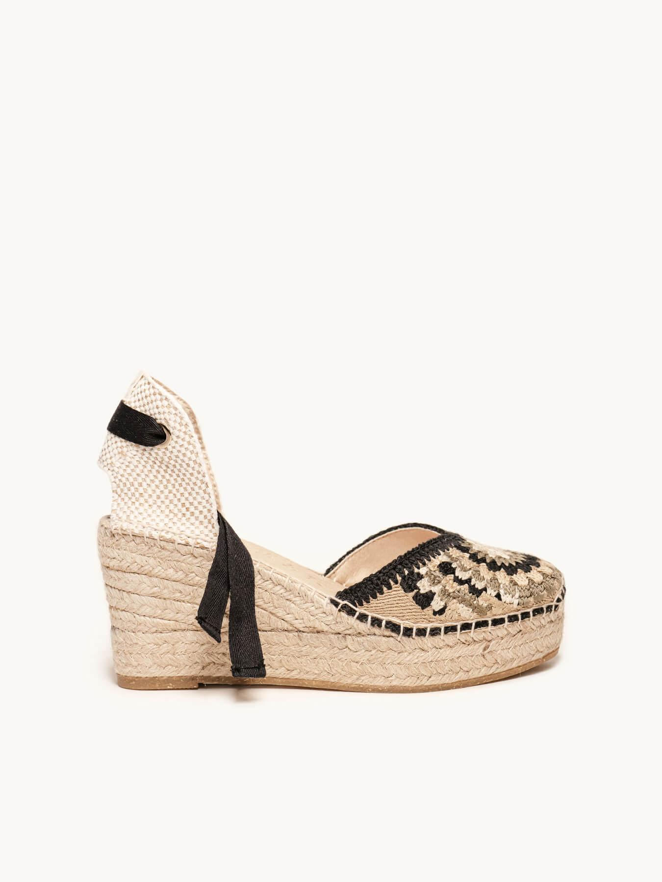 Sandália Anabela Média Plataforma Romero Roseta Preta REF: 8435670000432