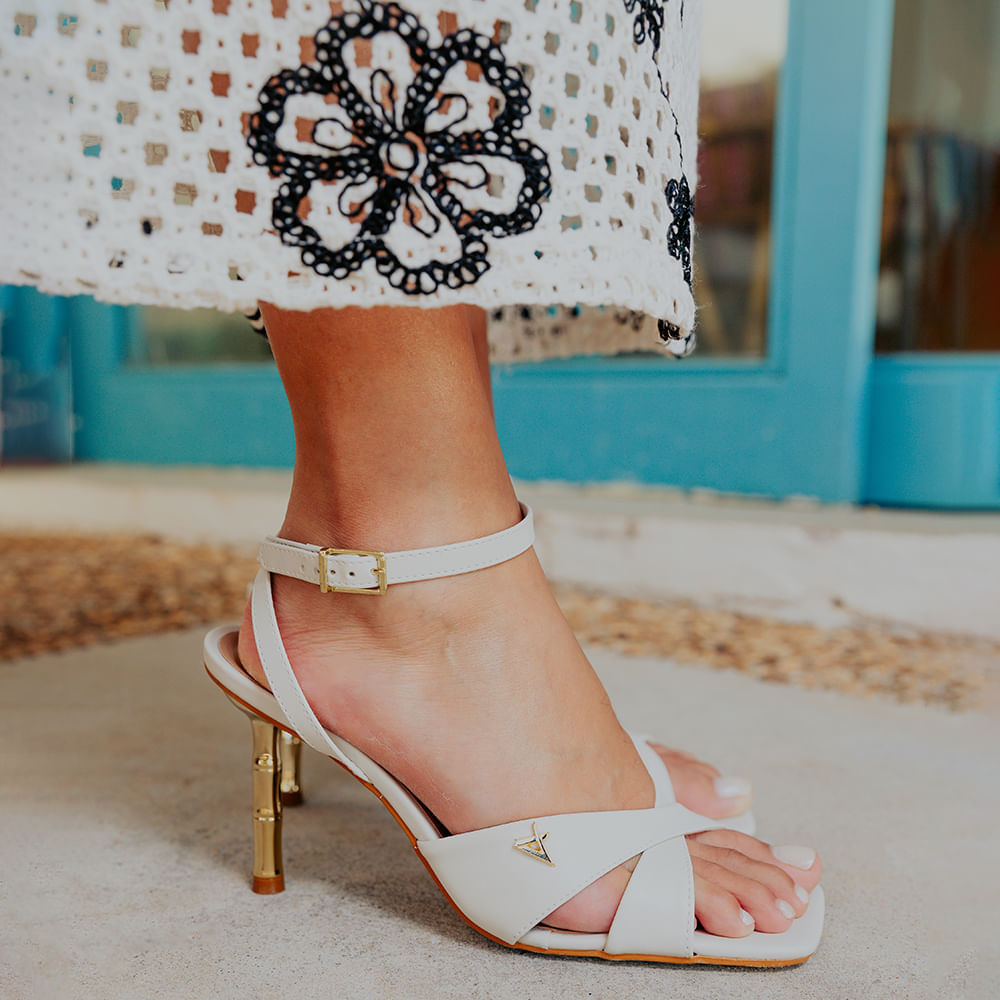 A sandália salto alto fino trançada da UseVertice é sinônimo de elegância e sofisticação. Seu design artesanal com trama trançada nas tiras, cabedal e salto confere um toque único e texturizado, destacando-se em qualquer ocasião. O salto fino de 9 cm aliado ao bico quadrado proporciona um visual moderno e equilibrado, enquanto o material sintético garante durabilidade e fácil manutenção. Ideal para eventos formais, festas e ocasiões especiais, esta sandália também se adapta a looks casuais-chiques, combinando perfeitamente com vestidos, saias midi ou jeans elegantes. O fechamento por fivela assegura ajuste confortável e seguro, enquanto os detalhes metálicos dourados no salto e o logotipo em triângulo adicionam um charme extra ao calçado.