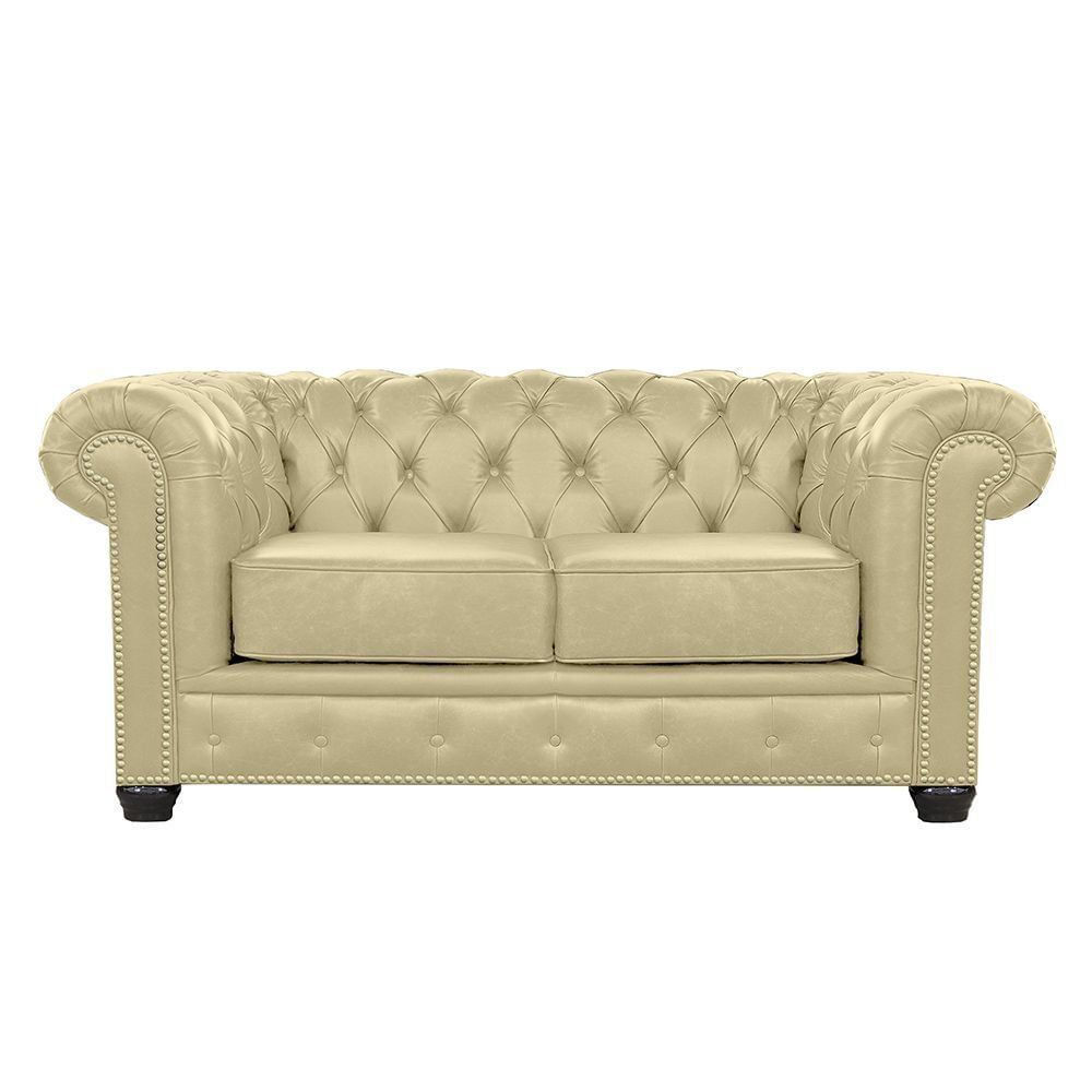 Sofá Chesterfield 2 Lugares com Pés Madeira Couro Bege - Mempra é um lançamento inovador que veio para atrair olhares com seu design estiloso e atraente, além disso, é desenvolvido com espumas que oferecem maciez ao sentar, seu revestimento em couro é resistente e super espaçoso que garante total conforto e durabilidade. É um produto que foi fabricado pensando especialmente em você consumidor que exige qualidade e bom gosto!