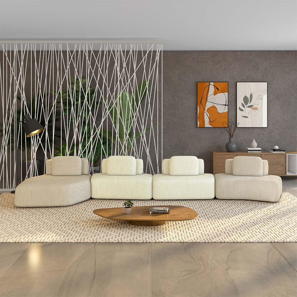 CasaMóveisSofásSofá Ilha Sala de Estar Dakota 4 Módulos 626cm Encostos Almofadas Soltas Linho Bege/OffWhite G33 - Gran Belo