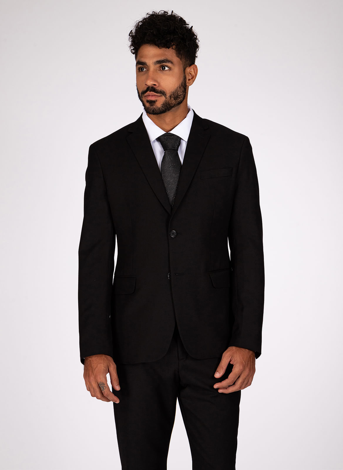 O Traje Costume Social Slim Liso Preto da TNG é sinônimo de elegância e modernidade, ideal para quem busca um visual alinhado em ocasiões formais. Seu corte slim fit valoriza a silhueta masculina, proporcionando um caimento ajustado e contemporâneo. Confeccionado em tecido com 65% poliéster e 35% viscose, o traje alia durabilidade, resistência e conforto térmico, perfeito para eventos em ambientes mais frescos. O forro interno e a estrutura com ombreiras garantem um acabamento sofisticado, enquanto os três bolsos no paletó e os bolsos laterais na calça oferecem funcionalidade sem comprometer a estética. A cor preta lisa confere versatilidade, combinando facilmente com camisas neutras e acessórios formais.