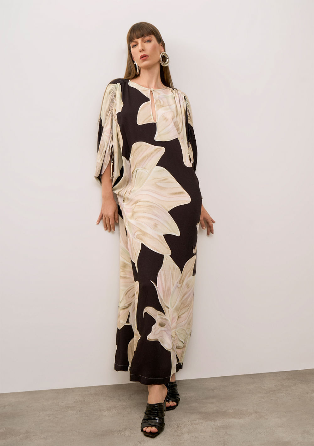 Estilo do Vestido: Solto com design fluido e mangas 3/4 com franzido ajustável