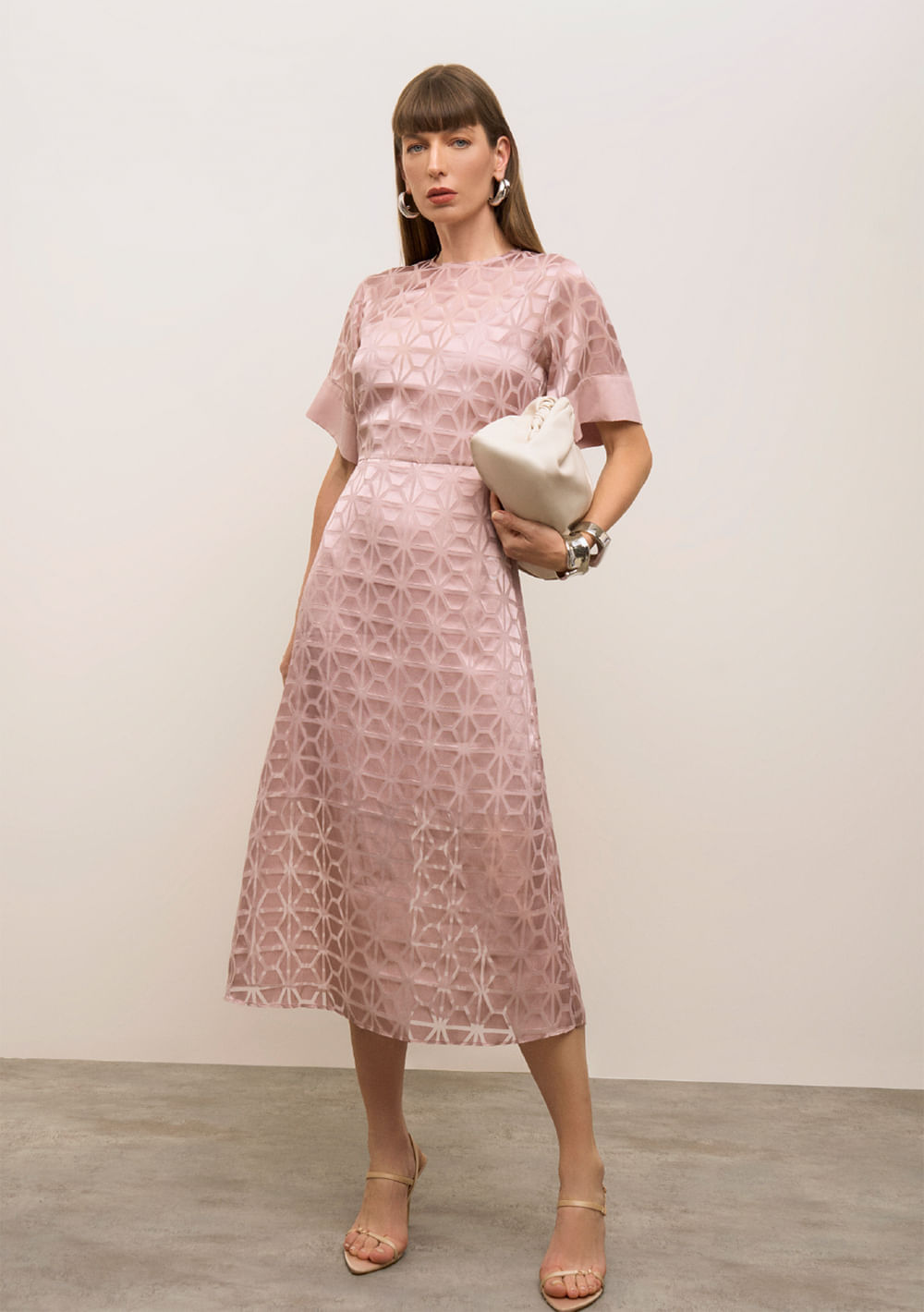O vestido Iódice Solto Chiffon Texturizado Manga Curta Midi Lilás é a escolha perfeita para quem busca elegância aliada ao conforto. Confeccionado em chiffon com toque suave e caimento fluido, ele oferece uma modelagem solta que valoriza a silhueta sem apertar, garantindo liberdade de movimento. Seu comprimento midi e decote redondo proporcionam um visual moderno e sofisticado, ideal para ocasiões casuais, festas e eventos que pedem um toque de feminilidade e leveza. A textura texturizada do tecido adiciona um charme especial, enquanto as mangas curtas tornam a peça versátil para diferentes estações do ano.