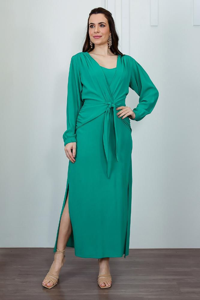 O Vestido Libardi Midi Fluido Manga Longa Azul Turquesa é a escolha perfeita para quem busca elegância aliada ao conforto. Seu tecido fluido proporciona um caimento leve e sofisticado, enquanto a pala com amarração permite ajustar o vestido ao corpo, valorizando a silhueta com um toque personalizado. A manga longa e o decote em V conferem um visual clássico e versátil, ideal para ocasiões que vão do casual ao formal. As fendas discretas nas laterais da saia garantem liberdade de movimento e adicionam modernidade ao design, tornando-o uma peça funcional e estilosa para eventos, trabalho ou lazer.