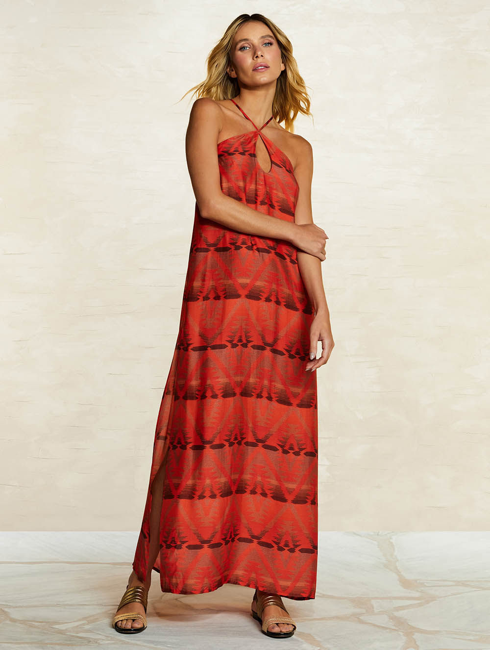 Este vestido midi estampado Navajo é a escolha perfeita para quem busca aliar elegância e conforto. Confeccionado em tecido de viscose com seda, oferece um toque macio e uma leveza incomparável, ideal para climas quentes e úmidos graças à sua alta respirabilidade. O design frente única com recorte no busto valoriza a silhueta, enquanto a fenda lateral proporciona liberdade de movimento e um toque sutil de sensualidade. O decote degagê nas costas, complementado pela amarração, permite um ajuste personalizado, garantindo conforto e estilo. Versátil, este vestido é ideal para ocasiões casuais, eventos sociais e momentos de lazer, destacando-se pela combinação de funcionalidade e estética sofisticada.