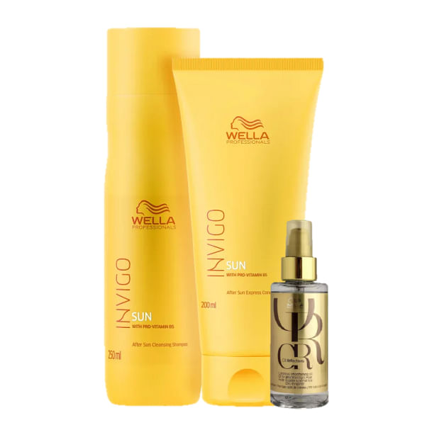 O kit Wella Professionals Invigo Sun Duo Home Care e Oil Reflections é a solução perfeita para cabelos lisos expostos ao sol, água do mar e cloro. Com fórmula enriquecida com óleo de damasco e o exclusivo Sun Blend, oferece hidratação profunda e brilho intenso, restaurando a saúde natural dos fios. Seu acabamento sedoso e toque leve garantem praticidade e conforto no uso diário, enquanto o design compacto e elegante do kit facilita o manuseio e armazenamento. Ideal para quem busca proteção eficaz e cuidado sofisticado, este kit é versátil para uso em casa, viagens e momentos ao ar livre.